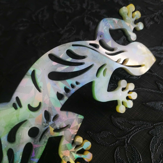 Apportez une touche originale et artistique à votre intérieur avec cette salamandre murale en résine époxy, entièrement faite main.